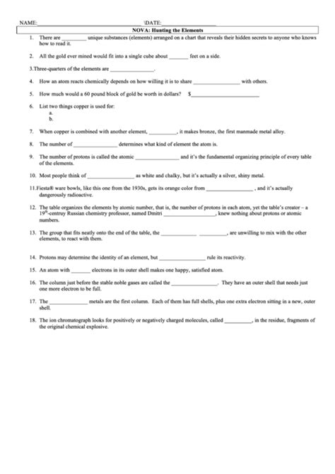 Read Online hunting the elements nova worksheet Audio CD